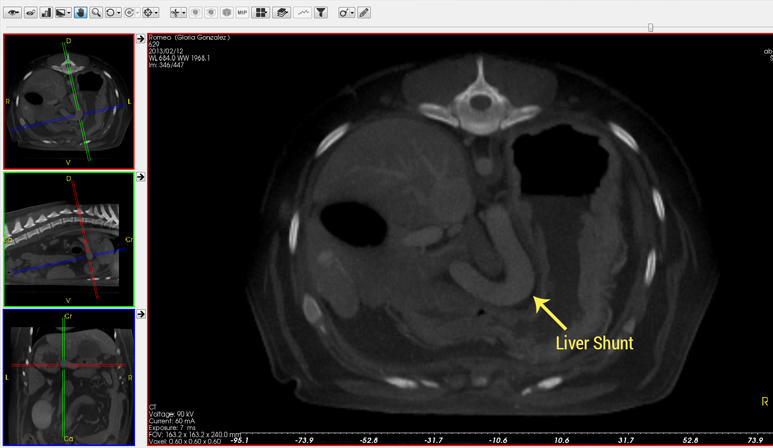 One of the most common indications for which we perform abdominal CT scans is to evaluate for the presence of a portosystemic shunt (PSS) or liver shunt- such as the one shown here.